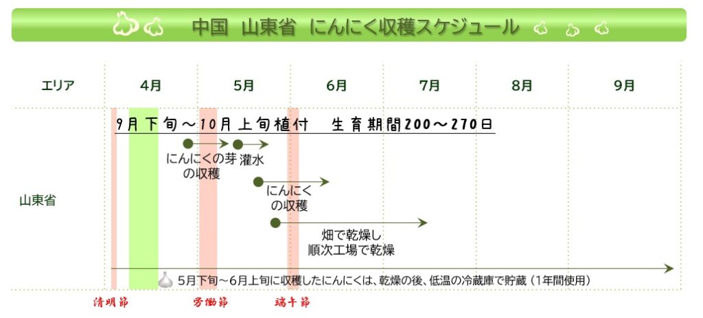 日本エルブが契約している中国山東省のにんにく畑(圃場)の生育状況をはじめ