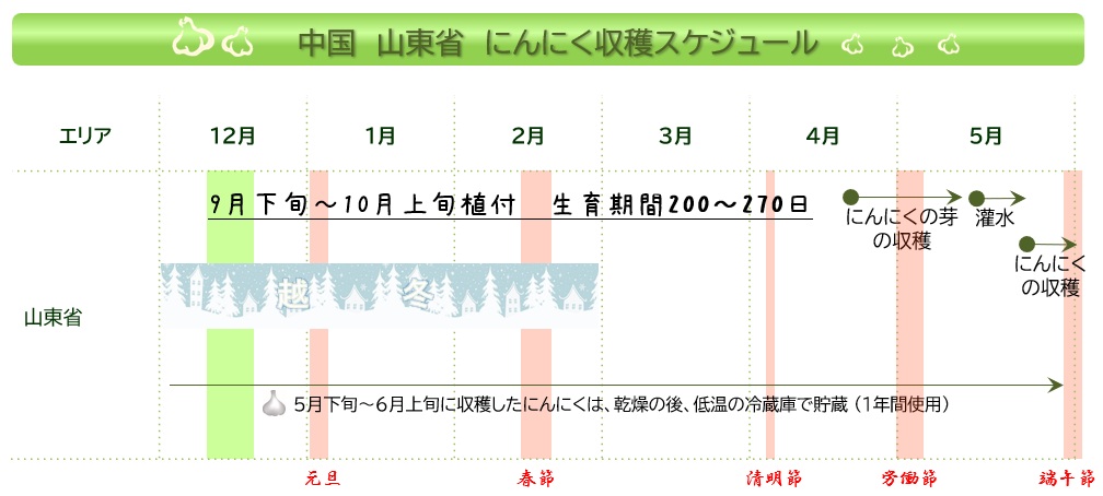 日本エルブが契約している中国山東省のにんにく畑(圃場)の生育状況をはじめ